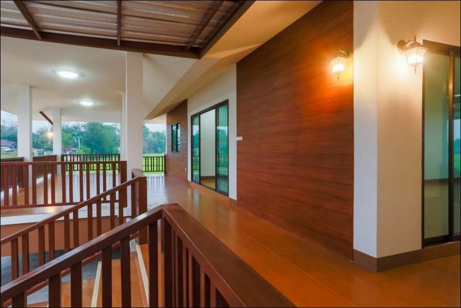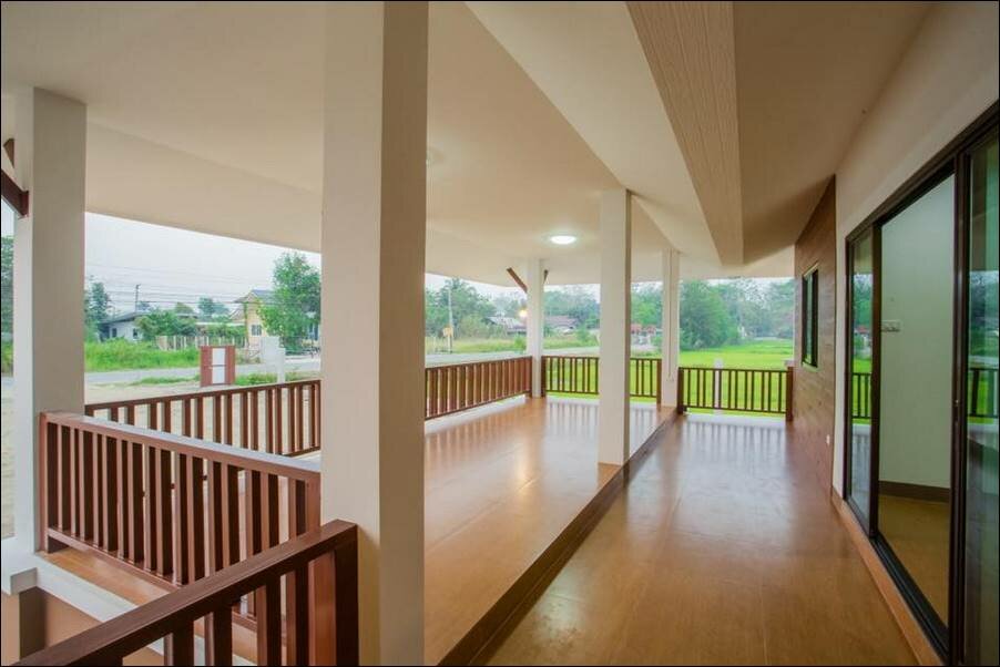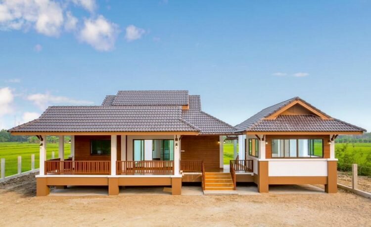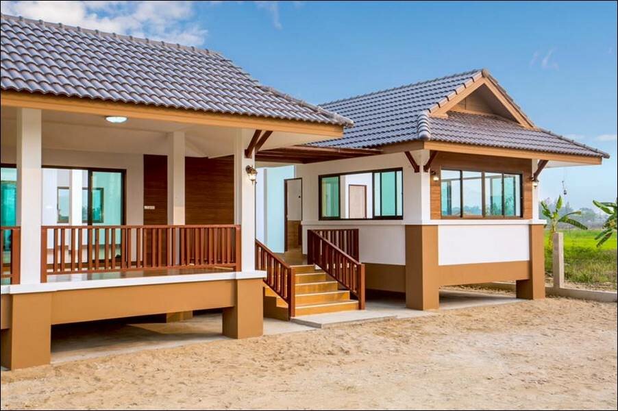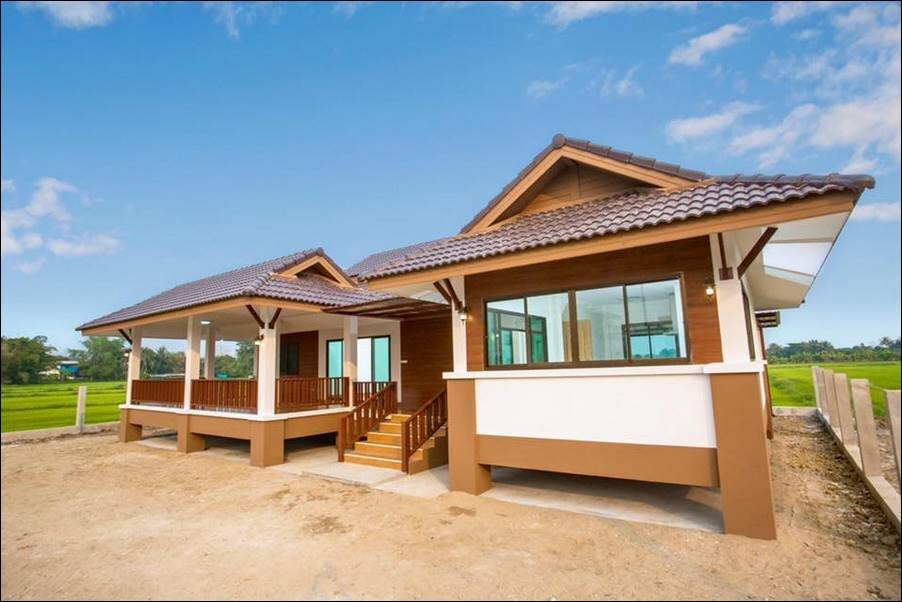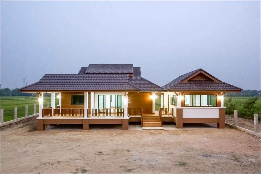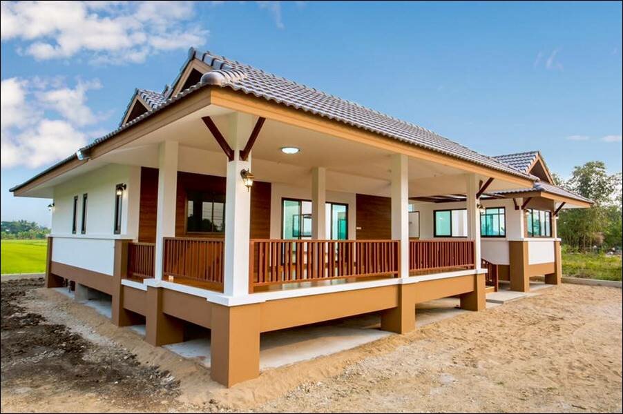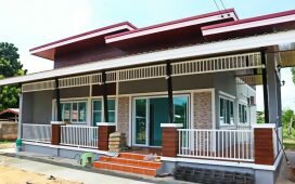 บ้านยกพื้นทรงไทยประยุกต์ 1 ห้องนอนใหญ่ 2 ห้องน้ำ 1 ห้องรับแขก 1 ห้องพระ 1 ห้องครัวพร้อมส่วนซักล้าง ส่วนทานอาหาร และศาลาระเบียงอเนกประสงค์หน้าบ้าน งบก่อสร้างอยู่ที่ประมาณ 2 ล้านบาท ปล.งบในการสร้างของบ้านแต่ละหลังต่างกัน ขึ้นอยู่กับหลายปัจจัย พื้นที่ก่อสร้าง วัสดุ ช่างและผู้รับเหมา ข้อมูลเบื้องต้นมีไว้ศึกษาเท่านั้น