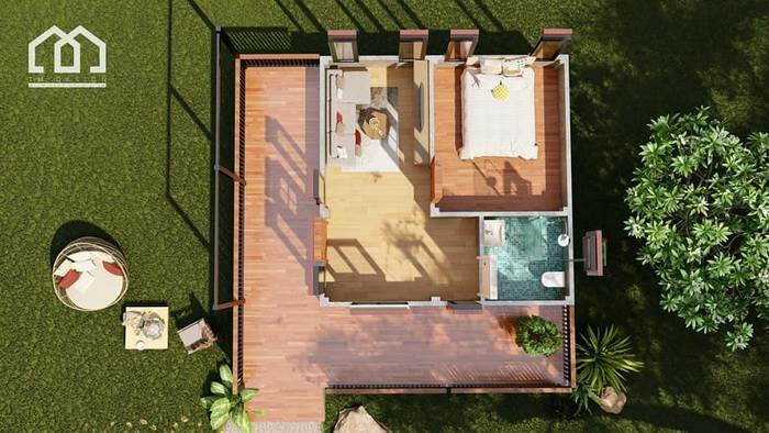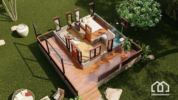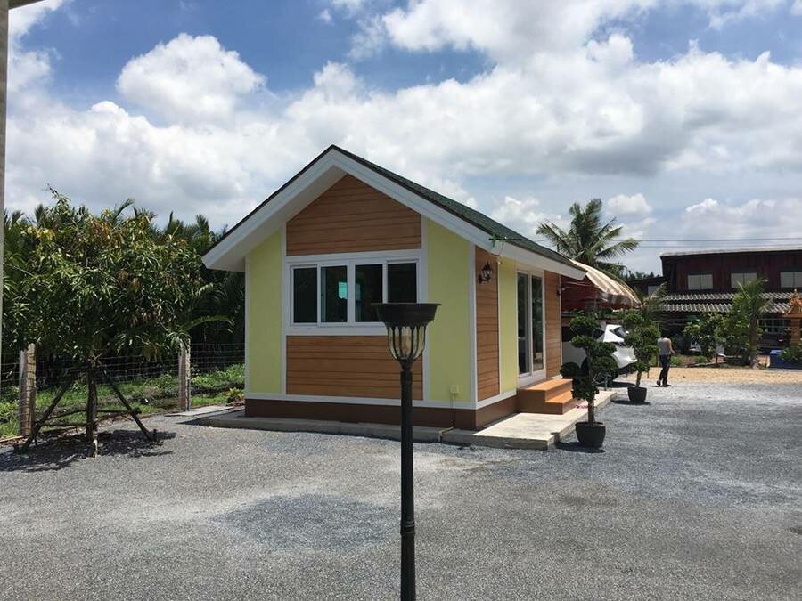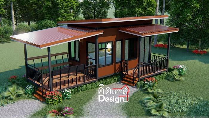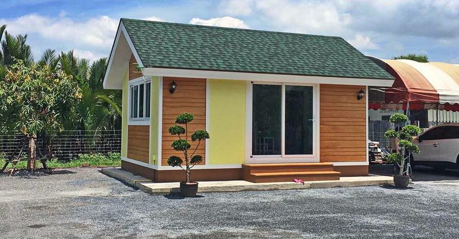 บ้านพักขนาดเล็กสไตล์รีสอร์ท ดีไซน์น่ารักในขนาดกะทัดรัด ราคา 348,000 บาท พื้นที่ใช้สอยโดยรวม 24 ตร.ม. ขนาด 4*6 เมตร พร้อมห้องน้ำในตัวขนาด 1.5*2 เมตร