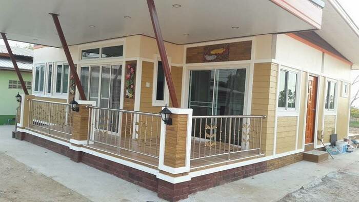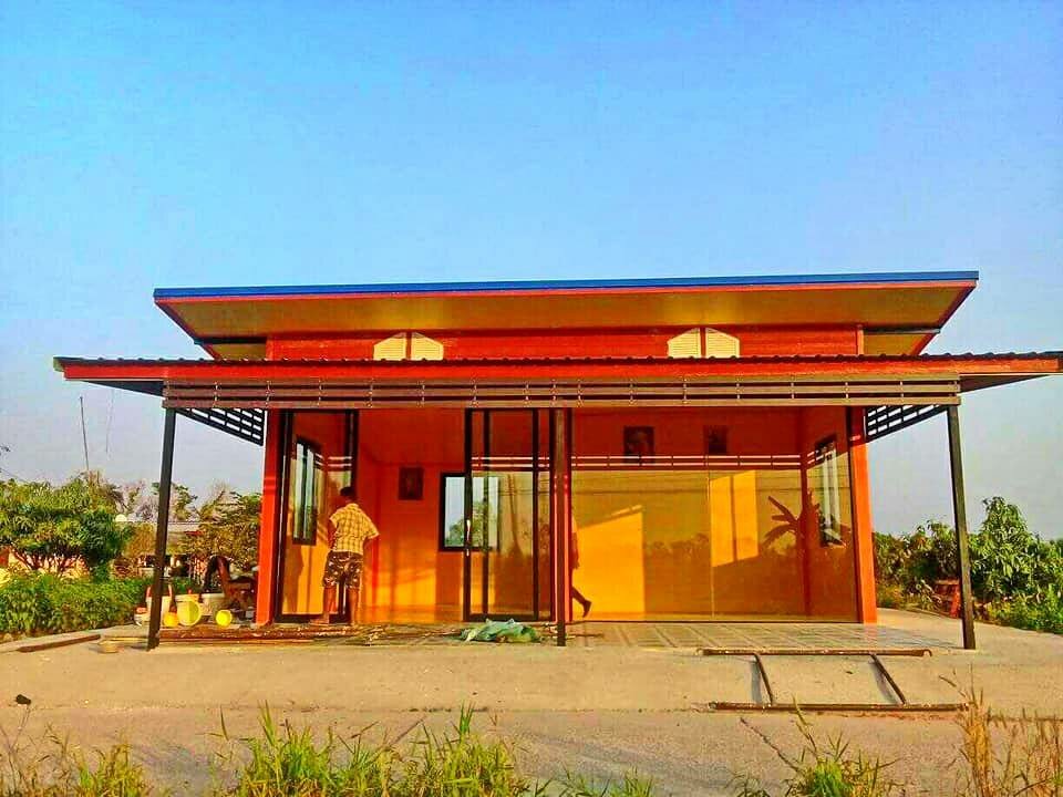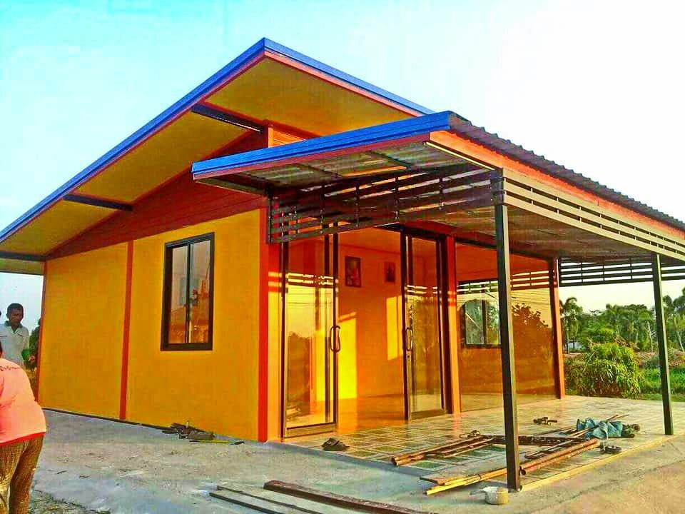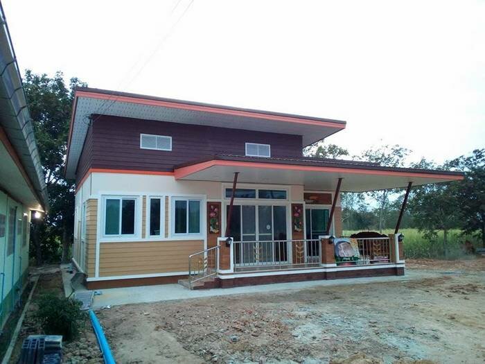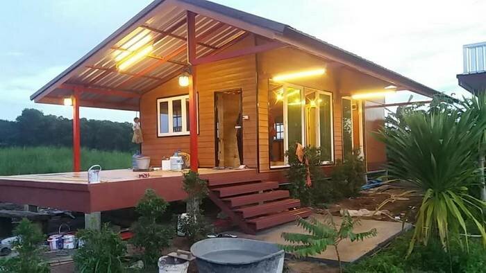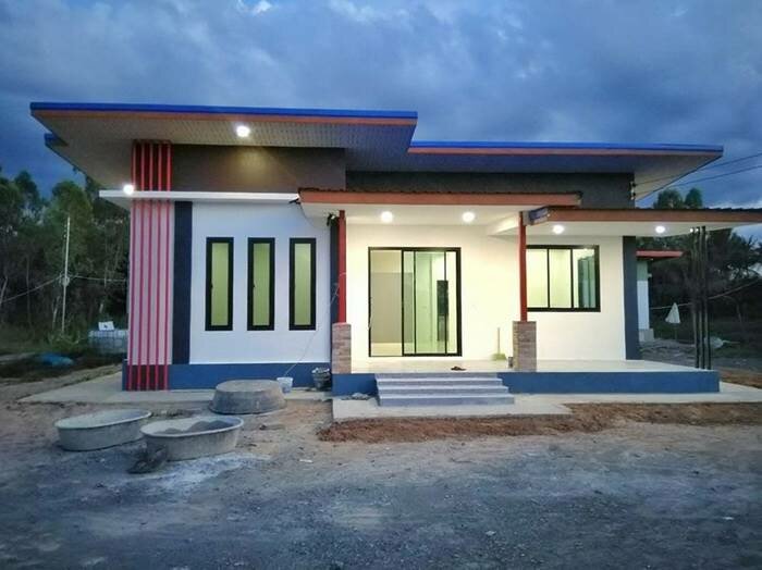 แบบบ้านสไตล์โมเดิร์น ผสานการก่อสร้างระหว่าง “บ้านน็อคดาวน์” และ “คอนกรีตเสริมเหล็ก” สร้างได้ด้วยงบไม่เกิน 500,000 บาท
