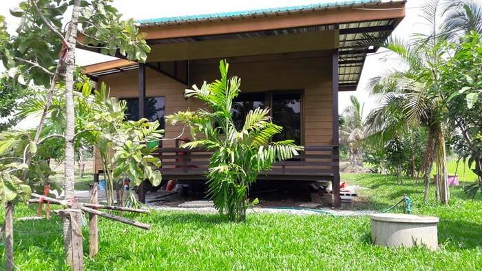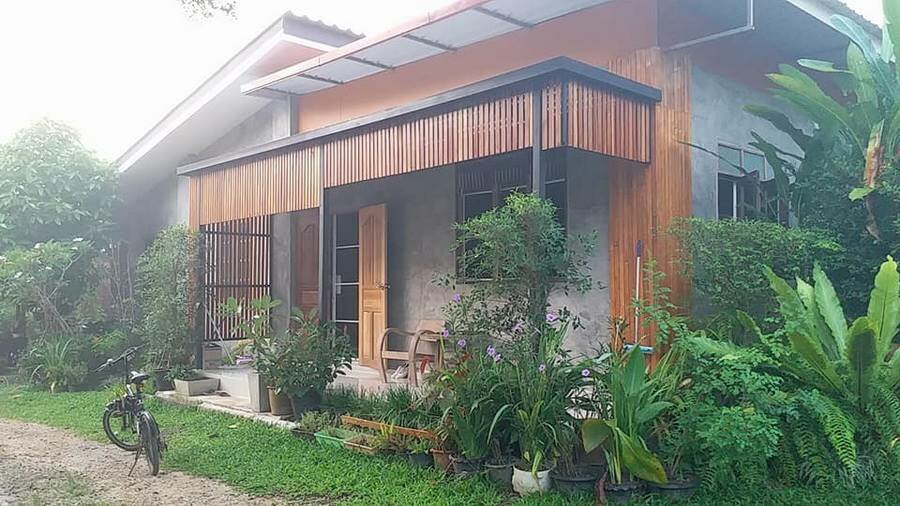 บ้านชั้นเดียวราคาประหยัด ขนาดกะทัดรัด โอบล้อมด้วยธรรมชาติ ในงบประมาณก่อสร้าง 250,000 บาท ใช้งบประมาณในการก่อสร้างเบ็ดเสร็จ 250,000 บาท (ไม่รวมเฟอร์นิเจอร์)