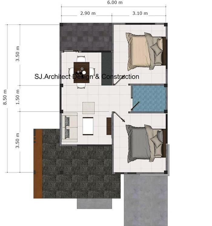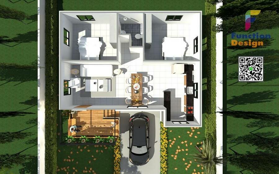 แบบบ้านขนาดกะทัดรัด ดีไซน์ทันสมัยเรียบง่าย ออกแบบเพื่อครอบครัวเริ่มต้น ในงบไม่เกิน 350,000 บาท (ไม่รวมเฟอร์นิเจอร์)