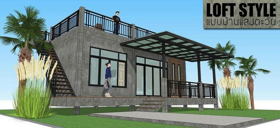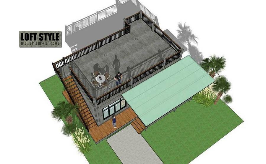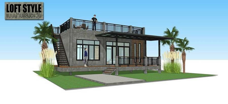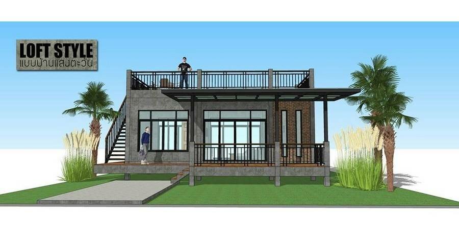 แบบบ้านโมเดิร์นลอฟท์ พร้อมดาดฟ้าเปิดโล่ง ขนาด 1 ห้องนอน 1 ห้องน้ำ งบก่อสร้างราว 400,000 บาท
